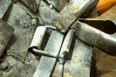 Posición del hierro de la correa y tachuela soldarlo en su lugar. Cuando se suelda en las escalera hebillas, mantenga una esponja húmeda cerca para enfriar el acero antes de exceso de calor puede ablandar las correas de nylon. Esto es sobre todo una medida de precaución. Las tiras de papel en el paso 4 deben ser adecuadas para proteger del exceso de calor.