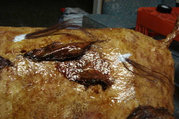 Este paso es una opción. Usé pelo de caballo para darle Rotoff un poco mas de extravagancia. Se puede aplicar como tan poco o tanto como usted. Utilice un poco de látex líquido para adjuntarlo. Utilizar para mezclar mancha. Finalmente Selle las áreas. Me gusta el look del pelo cuando sopla el viento. Dar Rotoff un poco de animación.