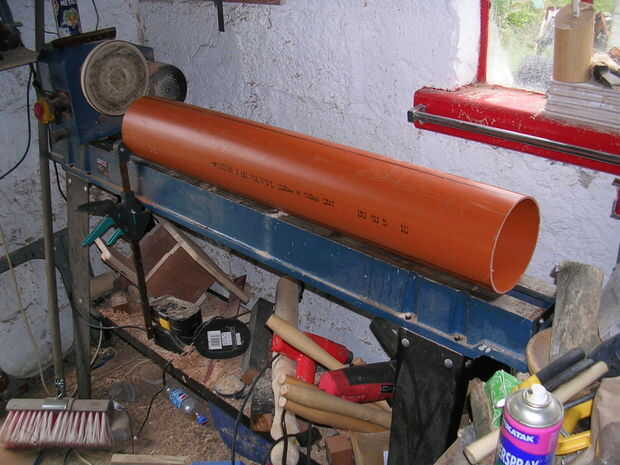 Una vez que el primer corte se hace girar el tubo y la abrazadera una vez más, después de la segunda corte un segmento desaparecerá de la tubería. La empanada entonces pudo ser empujado hacia abajo sobre el grano del torno donde se sentó agradable y constante para el corte final.
