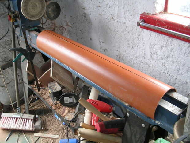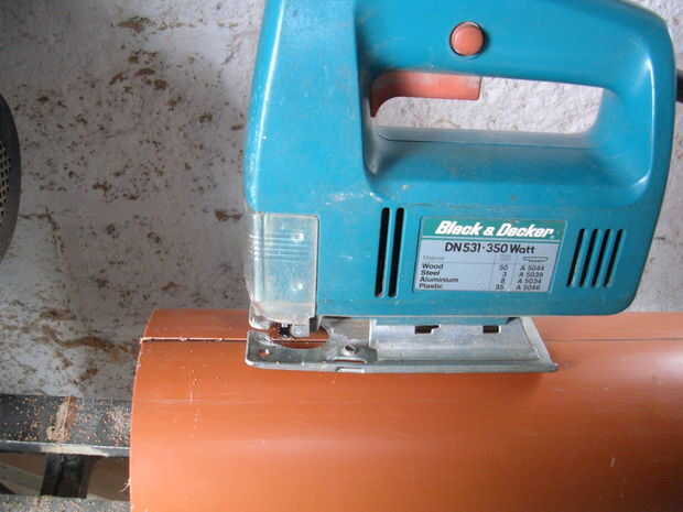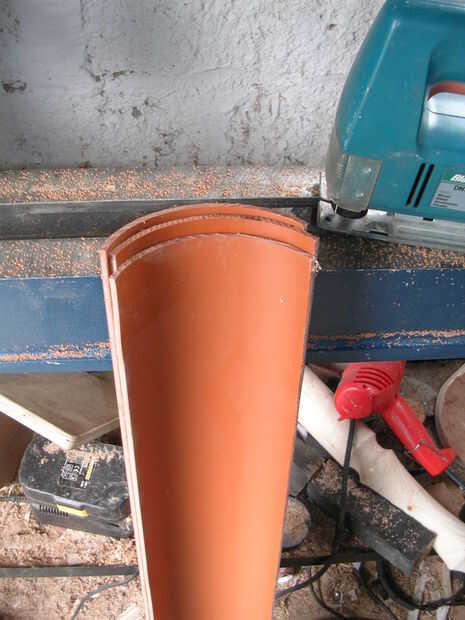 Utilicé una sierra de calar que fractura la tubería en los 3 segmentos. cada segmento haría 2 módulos por lo que tendría 6 láminas de esta pipa.