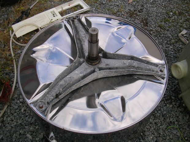 El rotor proviene de un tambor de la lavadora y se une al tambor con la prensa en los remaches. retirarlos o split en que se presiona el tubo de aluminio del remache o esmerilar la parte superior plana y centro perforarlo y taladrar el remache hacia fuera.