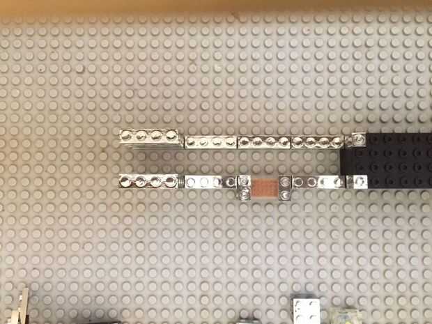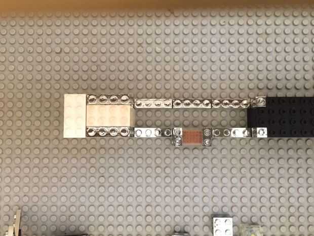 Hacer dos pilas de cuatro (4 x 1) ladrillos de cromo y coloque cada uno en un borde diferente del circuito.