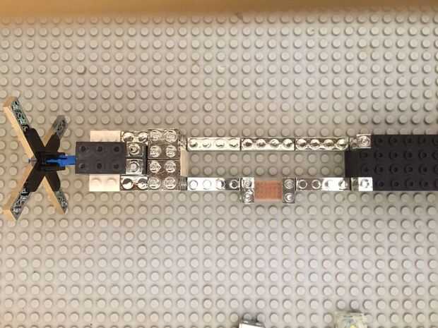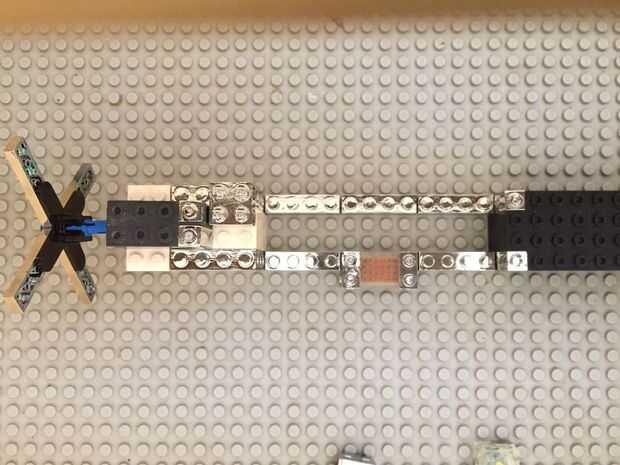 Poner dos bloques Brixo (2 x 2) para conectar los dos bornes del motor con el circuito. Asegúrese de que los brazos de muelle de los bloques (2 x 2) toquen los conductores del motor.