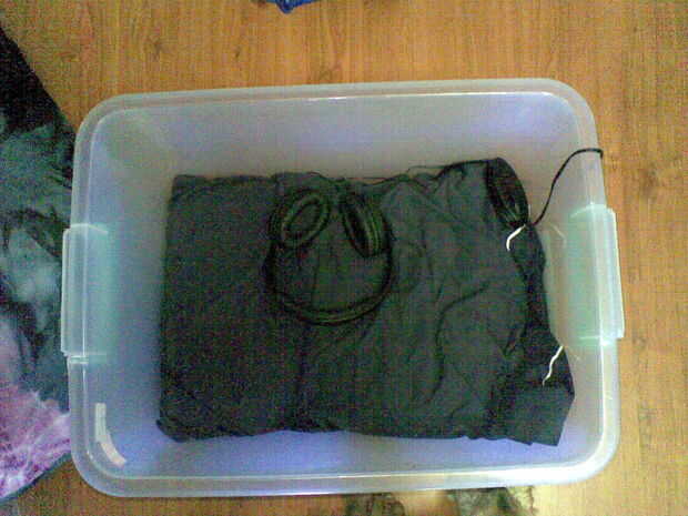 Coloque una almohadilla en la parte inferior de la caja. La almohada se ajusta perfectamente en la caja y es más grande que los auriculares.