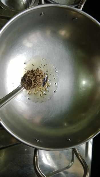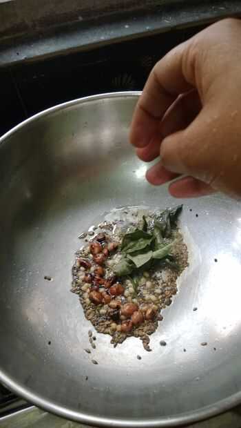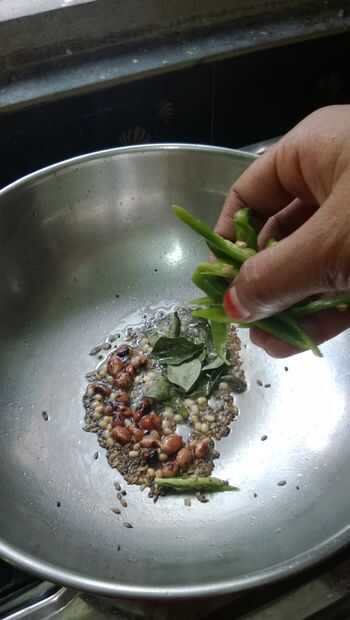 • Después de un momento mantener las hojas del curry y mirchi verde
