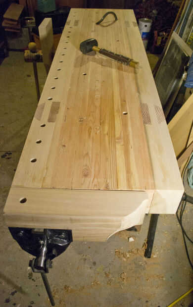 Además de la serie de agujeros de perro, perforé cuatro orificios más para su uso con un holdfast u otro dispositivo de sujeción. Estos deben colocarse tal que los discos de fijación pueden tener el alcance más efectivo a través de la superficie.