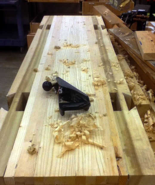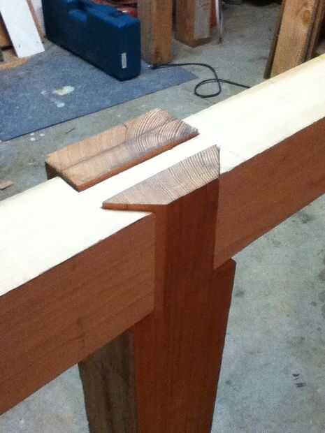 El exterior de las piernas debe ser totalmente al ras con el borde de la losa superior. Esto permite que todo el lado de la banca como una superficie de sujeción pero es una característica difícil de lograr. Intencionalmente he hecho las piernas demasiado gruesa un cuarto de pulgada cepilladas luego después de su instalación.