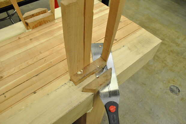 Cuando el pegamento esté seco es hora de picar esas cuñas y a través de espigas. En la foto es la tuerca de madera para la prensa de pierna, detallada aquí.