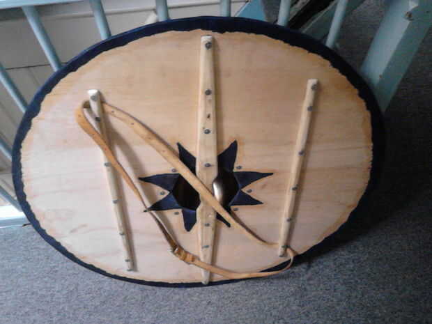 Había un diferente ible prometida a cualquier seguidores, pero esto sólo se conjugó perfectamente. Compré un tazón de acero inoxidable pequeño pensando lo usaría algún día para un jefe de escudo, y luego de un amigo ofrece una carga de madera perfecto para algunos escudos y mi papá estaba a punto de deshacerse de algunas hojas, por lo que todo lo que necesitaba era unos clavos, arandelas y woodglue!