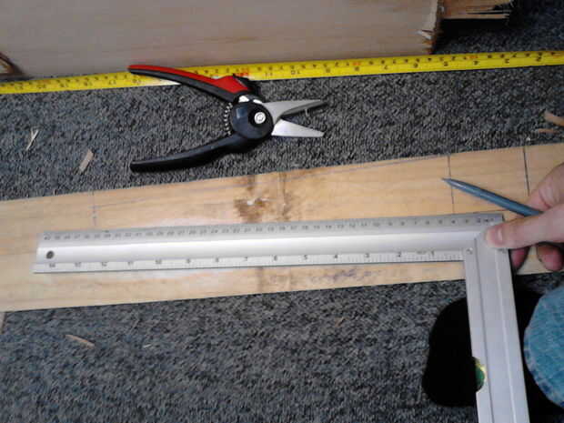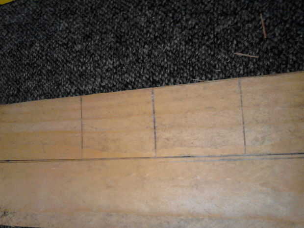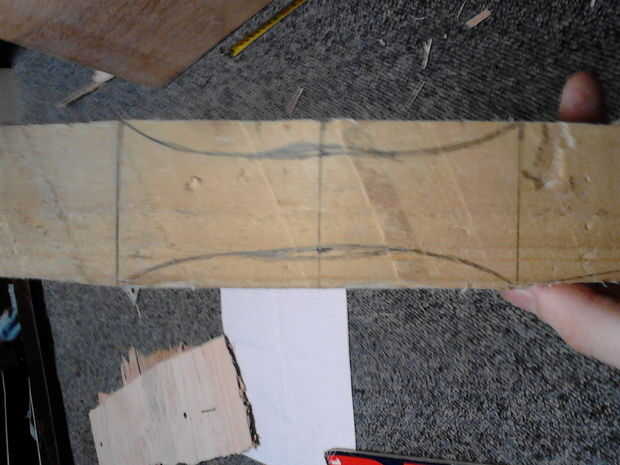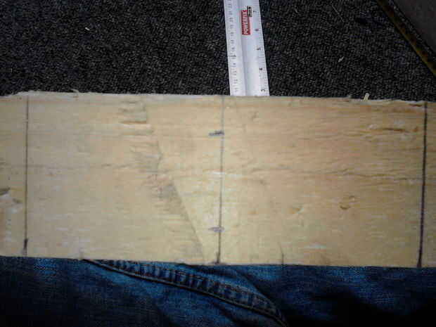 Mientras que la primera capa de la tela se está secando, permite comenzar a hacer el mango. Si la duela (como el mío) es de ancha para sostener cómodamente marcar un ancho de unos 5cm (o lo maneja bien). El mango va ser en forma de más tu mano más tarde así que un poco grande no es un problema.