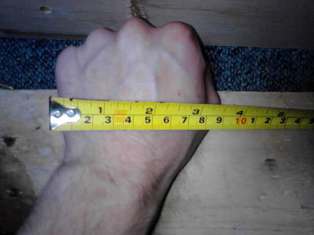 Su cinta medida para medir la anchura de su mano y añadir unos cm (para que pueda usar guantes acolchados / guantes). Haz tu tabla, marcar la longitud de tu escudo tamaño-5 cm (para mí su cerca de 75 cm). Luego marca el centro y la anchura de su mano (más el margen de guante) centrados en la tabla (cuadro 5).