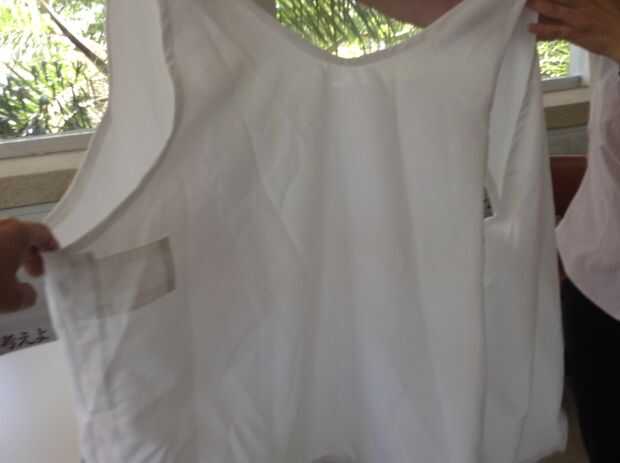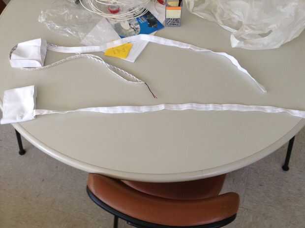 Com una ideia da posição dos sensores, bastou levar para uma costureira una ideia, e falar da tubulação onde passariam os fios.