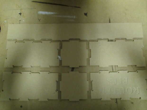 Otra cosa que usted notará es la esquina superior izquierda de daños de la parte de "Bits de enrutamiento". Esto fue debido a la mala planificación de la localización de de los clavos utilizados para asegurar el material a la mesa de fresadora. Otra vez, esta fue una de las razones para el proyecto... aprender de los errores a evitar en futuras piezas.