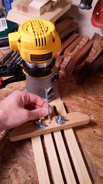 Chenillé un plato típico router rectangular de plástico o metal para un ajuste exacto se puede hacer con algunos restos de madera, tornillos de bolsillo o galletas y el router sí mismo usando la subbase prevista como plantilla. Ver cómo en el siguien