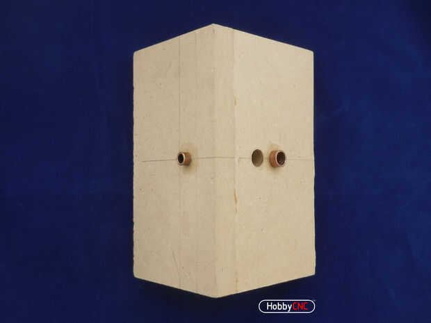 Después de cortar todas las piezas, se debe tener cuidado al taladrar los agujeros para las tuercas de barril. Con cuidado, hice una plantilla para taladrar mediante casquillos de cobre amarillo del tamaño de los pernos (1/4" en mi caso) y la tuerca (3/8") que me permita perforar agujeros perfectamente alineados sin tener que medir (un ahorro de tiempo enorme).
