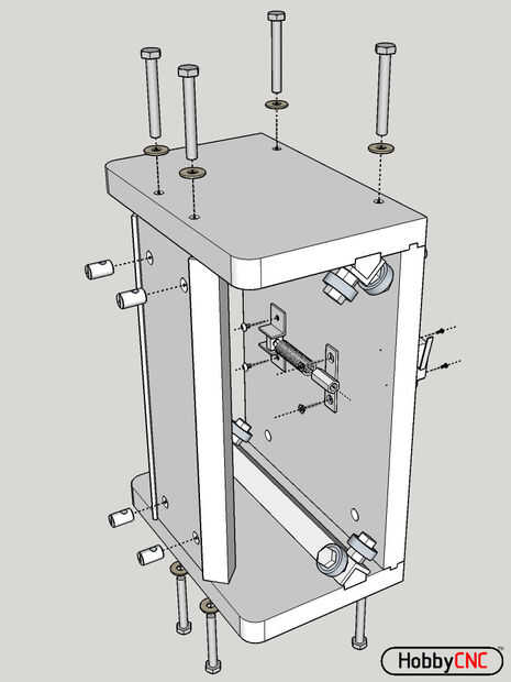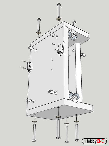 Montaje de eje es idéntico del eje x. El eje y se mueve a lo largo del eje x, de izquierda a derecha. Como con todas las piezas, cuidado en el corte y el diseño son importantes para asegurar una calidad de salida de tu router.