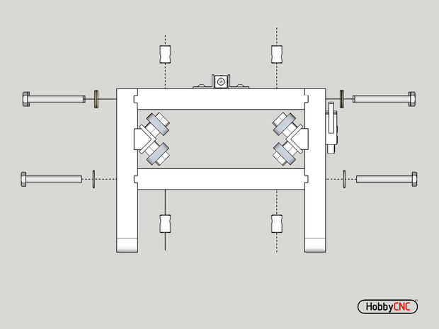 Añadir rodamientos a ambos extremos del tornillo de la impulsión de eje y doble tuerca asegurándose de que hay cierta tensión en el tornillo.