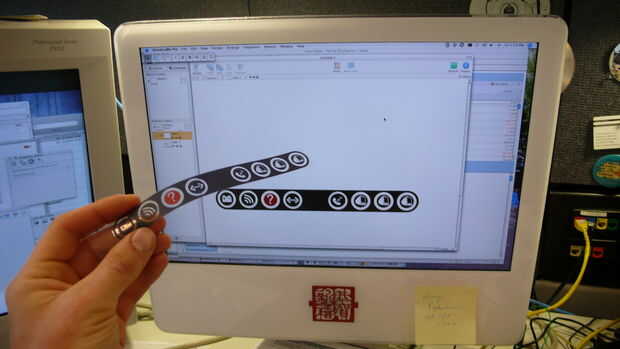 Me enamoré con un interruptor de una pieza de hardware de desarrollo en el trabajo, desafortunadamente era un interruptor momentáneo, así que pasé mucho retro tiempo caber un microinterruptor N/O con un LED azul pegado a la punta.