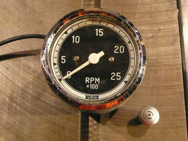Cuentarrevoluciones: esta es la parte estoy 'reutilizar', un medidor VDO, todavía tener alguna mugre de barco de pesca en él. La prueba demostró que sus características eran que gustaba a alimentar una entrada lineal de 0-12V