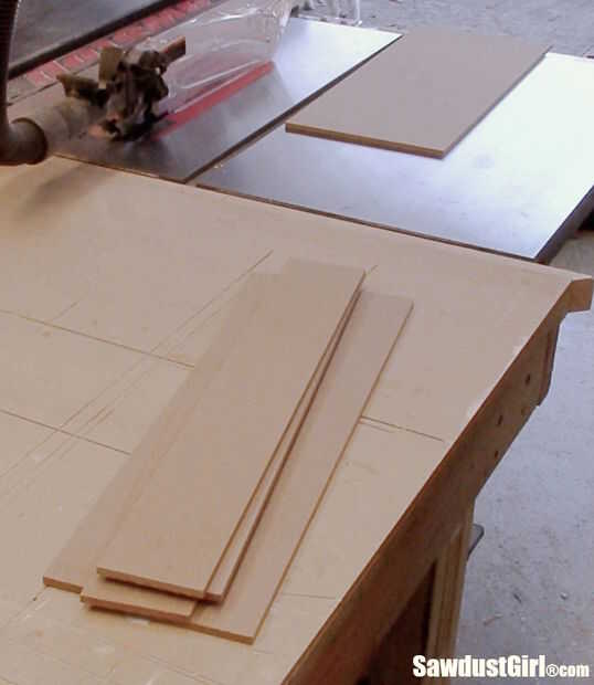 1. Cortar tiras de 3" de 1/4" MDF para ajustarse al ancho de su cajón.