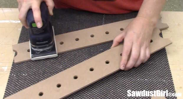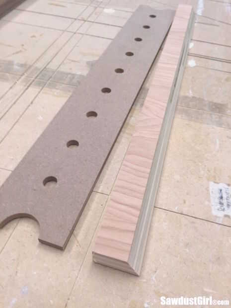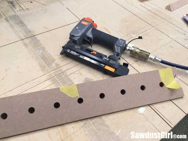3. Use pegamento para madera y clavos para sujetar los tableros MDF en el ángulo superior de la tira de madera contrachapada.