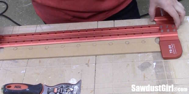 - Rastrear la ubicación de los agujeros de 1/2" en su nueva placa MDF.
