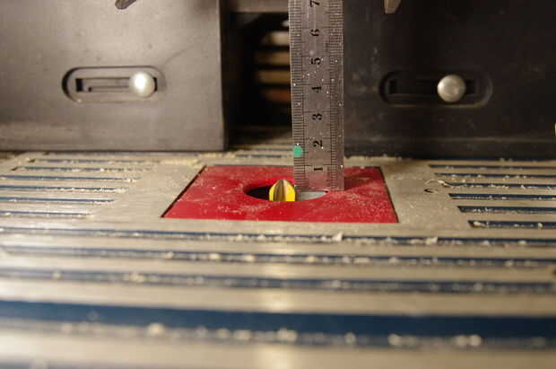 La tercera imagen muestra el elevador colocado listo para levantar el router, y el segundo de la última foto muestra el router en posición elevada, donde es fácil comprometerse solo es bloqueo de la propia profundidad en la posición deseada. Una regla en la parte superior de la tabla puede ayudar con este (última foto).