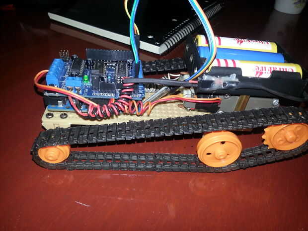 En primer lugar, encienda la la Arduino ROVERBot. El módulo bluetooth empezará a parpadear el LED rojo (indicando que no está conectado a un ordenador o bluetooth maestro de control);