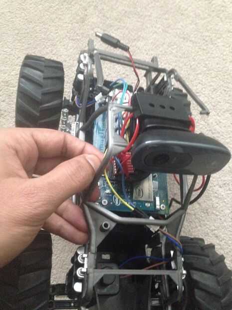 Ahora coloque la parte impresa 3D en la cámara y usando Zip lazos asegúrelo a la parte superior de la rover.