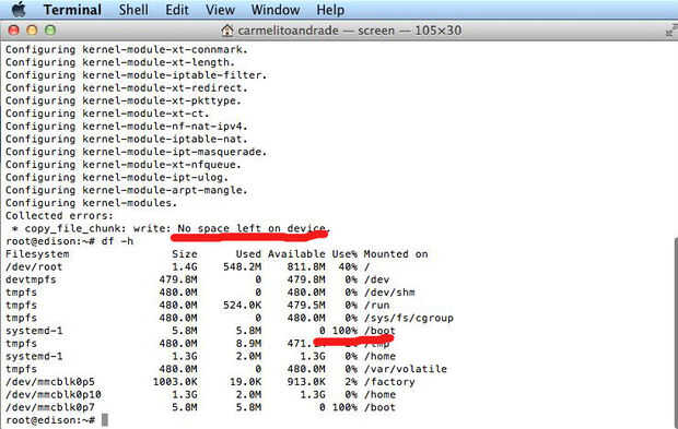 Antes de instalar los módulos del kernel, necesita para copia de seguridad, incrementar y restaurar la partición de arranque, o se ejecuta en el error como se muestra en la primera pantalla arriba.