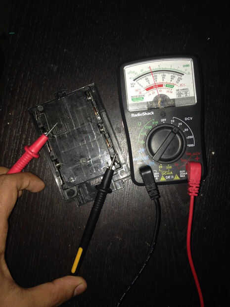 Una vez agregar baterías al titular y hacer una prueba rápida de la tensión con un multímetro como se muestra en la foto de arriba, en mi caso el sostenedor de batería utiliza 5 pilas AA, que significa una tensión de salida de unos 8-8.5 voltios.