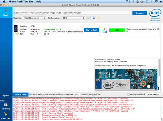 Como parte de esta instalación como se muestra en la imagen de arriba que vamos para utilizar la herramienta Flash Lite herramienta en vez del viejo método de línea de comandos que incluya el comando (reboot ota) fue utilizada en uno de mis mayores instructable (Getting Started with Intel Edison - programación Python)