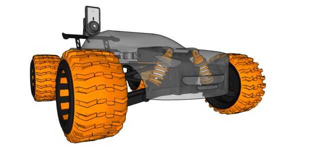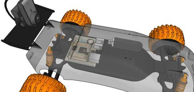 camiones controlados llamados "Traxxas E-Revo" y dotándolo de una sola computadora de tablero