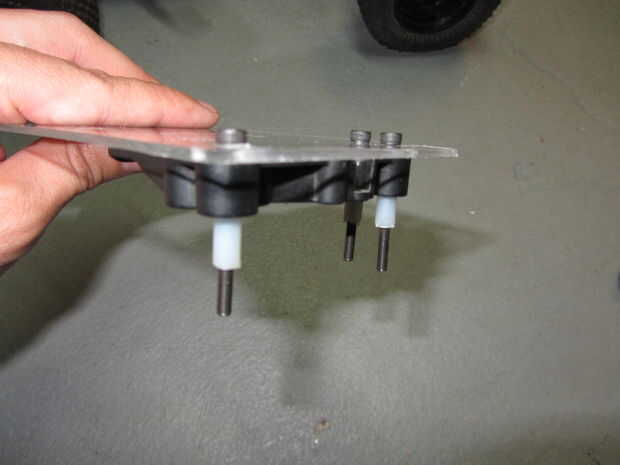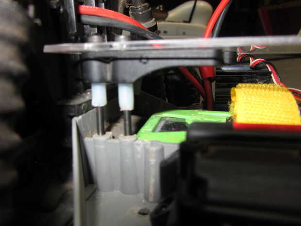 Si no encuentras a los espaciadores que son todas las longitudes de las derecha, probablemente tendrás que cortar a 1/2". Acababa de usar unas tenazas y lo hizo bien y obtienes el beneficio añadido que ahora usted puede atornillar a los tornillos y lo sostienen los pernos en su lugar sin caerse al tratar de instalar todo después. Cuando termine esta parte, debe parecerse a la sexta imagen. Recuerda que en mi generación, utilizado tres pernos de aquí porque no tengo el cuarto agujero en mi chasis de una modificación anterior. La mayoría chasis de Traxxas Rustler tendrá cuatro agujeros a que puede empernar.