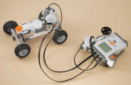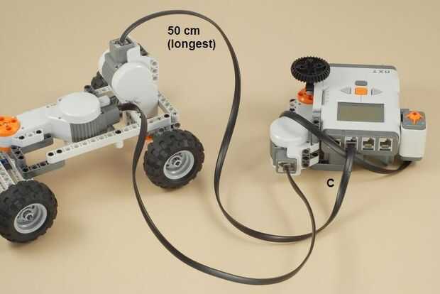 El segundo problema que afecta a la dirección es con las ruedas delanteras. Aunque las ruedas delanteras pueden girar a diferentes velocidades, el brazo paralelo del mecanismo de dirección en esta hace de vehículo girar ambas ruedas en el mismo ángulo, pero esto es no lo que quieres para un sharp gire. Si dirigir en un ángulo agudo y mirar las ruedas delanteras, se verá que no se encuentran en los ángulos correctos para seguir alrededor de las trayectorias circulares adecuadas es necesario. El interior de la rueda debe girar en un ángulo mayor que puede conducir el interior rueda alrededor de un círculo de un radio más pequeño que la rueda exterior. Una solución a esto se llama manejo de Ackermann, que también se utiliza en diversas formas en coches reales. Lograr esto con lego es muy complicado, pero si usted busca para lego te manejo de Ackermann encontrará algunas ideas. ¿Utilizando el mecanismo de dirección para este vehículo, puede usted diseñar su propia autónoma (no controlada remoto) vehículo con el ladrillo NXT que con programa de control? Programación de proyecto NXT.
