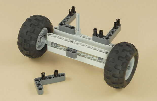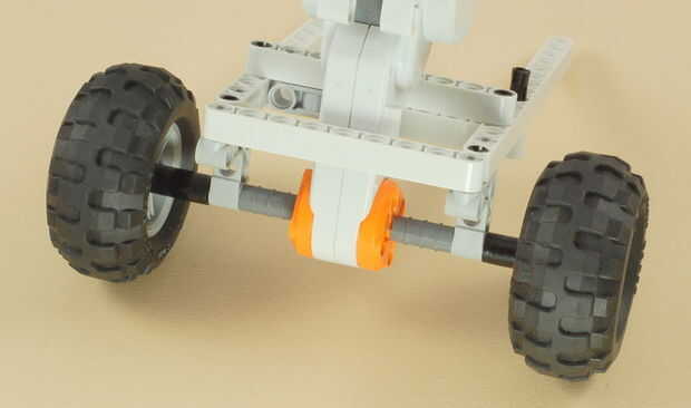 Un problema con el diseño que hace se vuelve agudo no funciona bien es que las ruedas traseras son ambos obligadas a ir a la misma velocidad debido al eje sólido de conexión les. Al hacer un giro, las necesidades de la rueda exterior gire más rápido que el interior de la rueda para evitar resbalones, pero el eje sólido evita esto y las ruedas traseras van que al mismo ritmo hace que el vehículo resiste a torneado. Coches reales utilizan un diferencial a resolver este problema. Hay realmente una pieza LEGO Technic diseñada para esto, se muestra a continuación con los engranajes y ejes que la hacen trabajar para esta solución. Si tienes esta parte, puede tratar de modificar el vehículo para añadirlo. El motor de accionamiento de la rueda trasera va a querer uno de los dos engranajes integrado en el gris del diferencial de la vivienda en lugar de cualquiera de los dos ejes del coche.