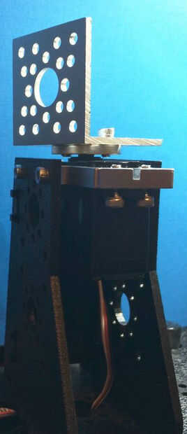 • Tomar el eje del servo y colóquelo a un lado del soporte y fijar junto con el. 2125" tornillos como en la foto
