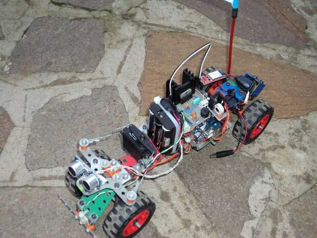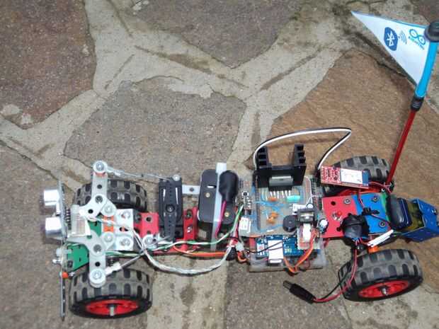 Hola, este es un coche de Bluetooth de código abierto . Es muy reactivo y puede ser controlador por medio de una aplicación para Android o un programa para Windows. La aplicación de Android se hace usando el MIT App Inventor 2 por lo que es muy fácil de modificar; el programa de Windows es autoría de Visual Basic .NET con Visual estudio 2015. El núcleo es un Arduino UNO que recibe datos de Sparkfun BlueSMiRF plata, un pequeño receptor de Bluetooth $ 24,95.