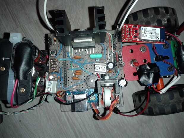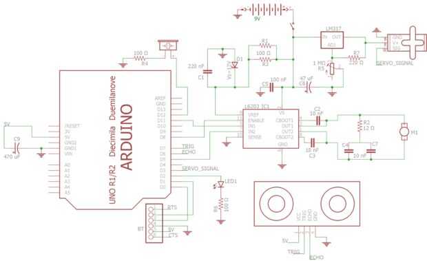 Para conducir el motor de 9V de 7A 2, de la manada de Meccano usé un puente H llamado L6203 (hoja de datos). El motor servo que utiliza es muy potente pero necesita escudo de 6V, así que añadido un LM317 a mi DIY.