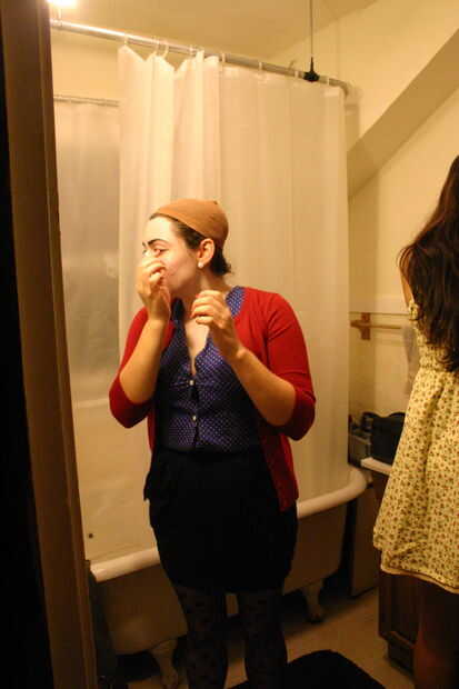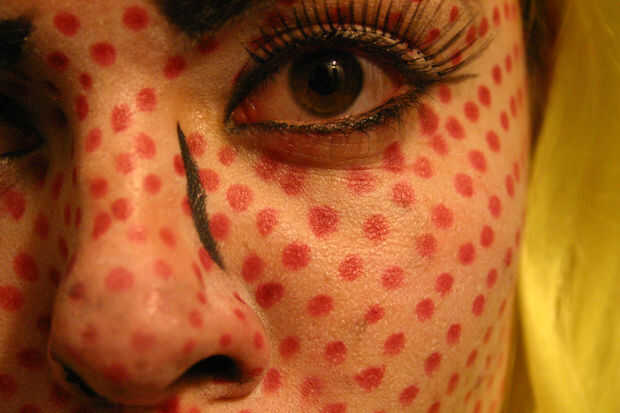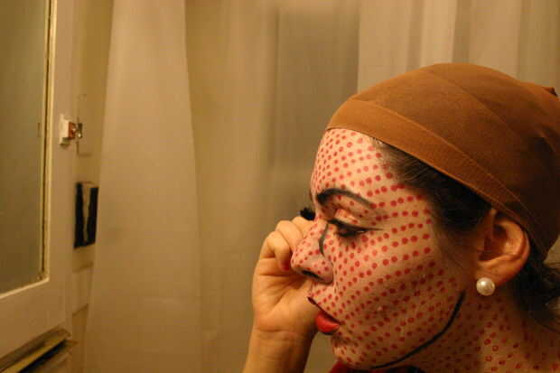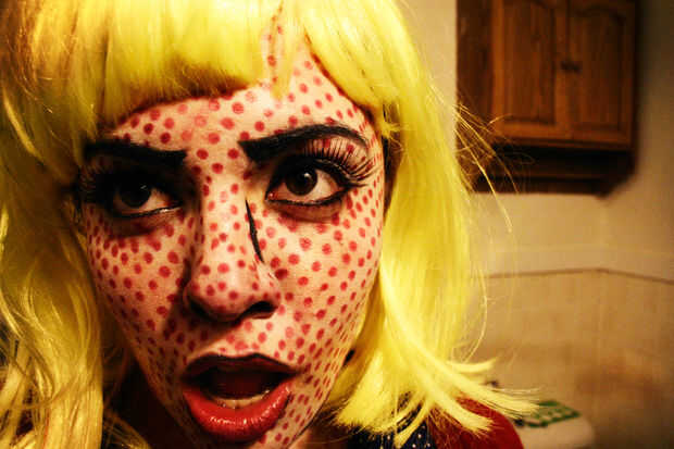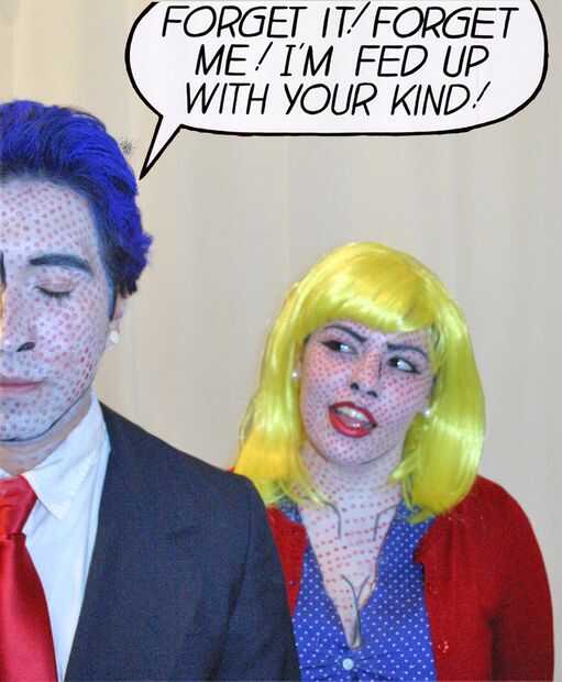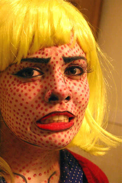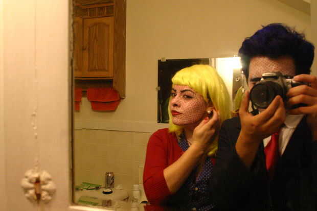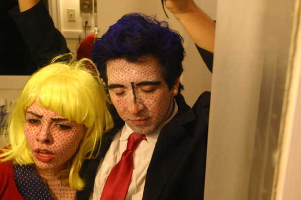 El traje es sencillo pero tedioso. La combinación de algunos de nuestros artículos de ropa y un par cucharas de tienda de segunda mano hemos podido armar el atuendo de la pareja. La pintura fue hecha con pinturas de simple cara y mucha paciencia para crear el efecto punteado que Roy utiliza en su trabajo.
