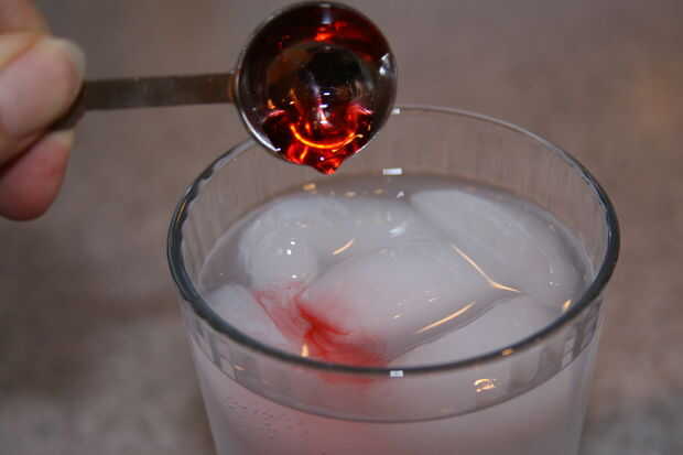 buena para beber en verano!!!!Paso 1: Jarabe de granadina de Rose Anuncios tanto jarabe como usted quiere. Empezar con un poco al principio, luego si el gusto no es correcto, añadir más.Paso 2: mezclaMezclar con una cuchara. Si no se mezcla, el jarab