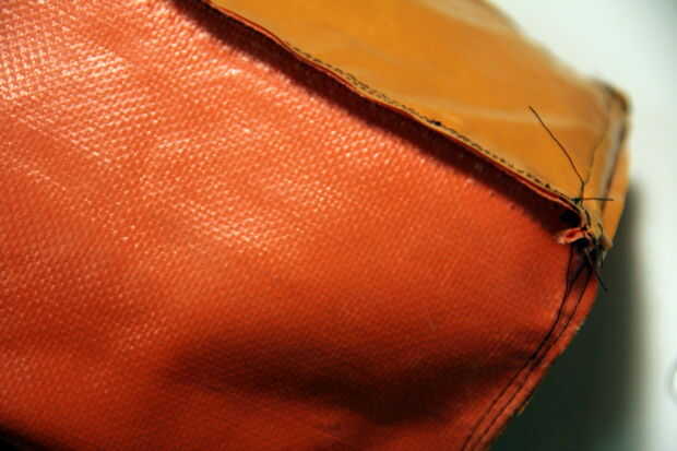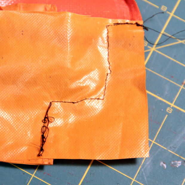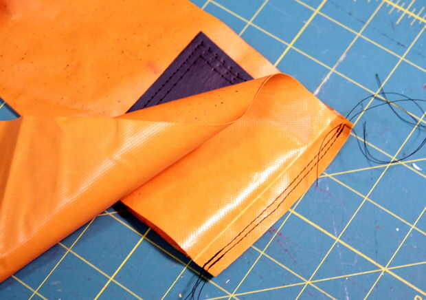 Coser lados hacia arriba, todo recto. Esto debería ser una costura angular, obligando a recortar triángulos de los costados.