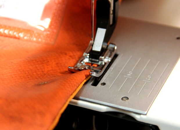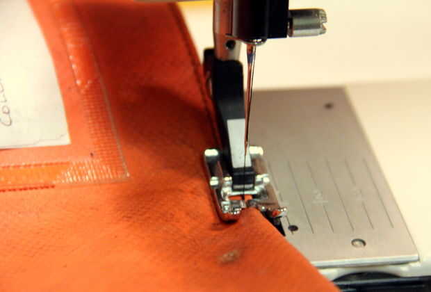 Para la durabilidad agregada, puntada sobre el exterior de las costuras, como se muestra. Esto debería hacer que la bolsa impermeable (bueno, excepto en la cremallera).