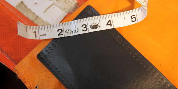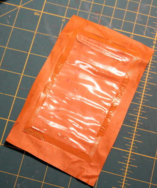 Cortar el bolsillo claro de la parte delantera de la bolsa naranja clara.