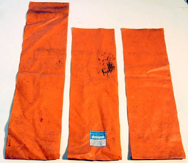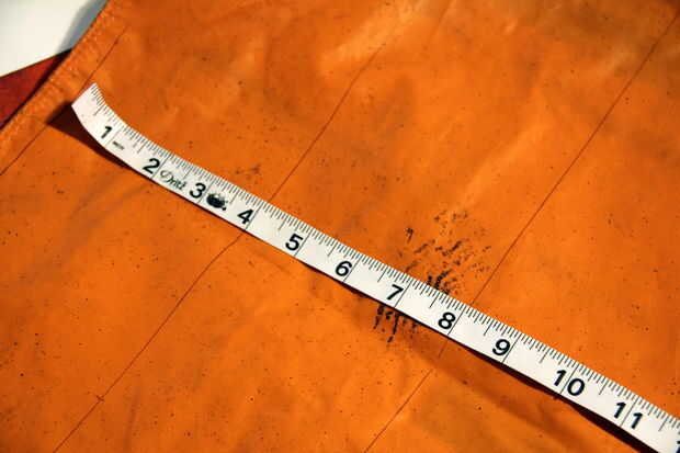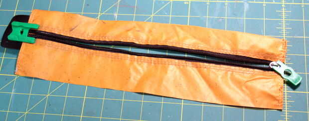 Corte la cremallera de la bolsa naranja clara, manteniendo a tanto tejido como sea posible en la parte superior e inferior.
