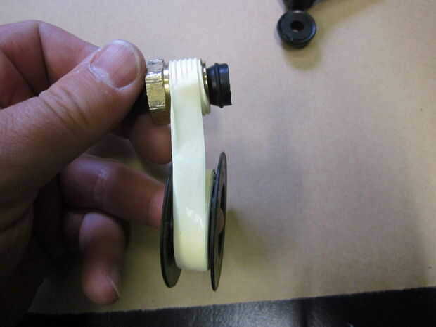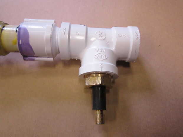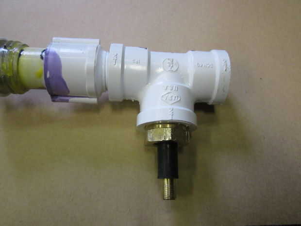 La válvula Schrader se lleva a cabo en lugar de comprar un reductor de 3/8 en el montaje en el Tee como se muestra, de 90 grados