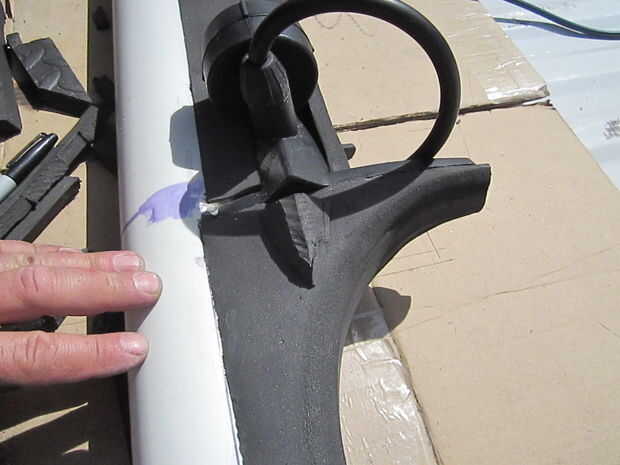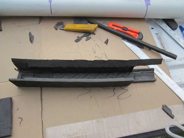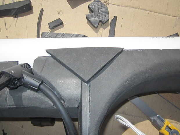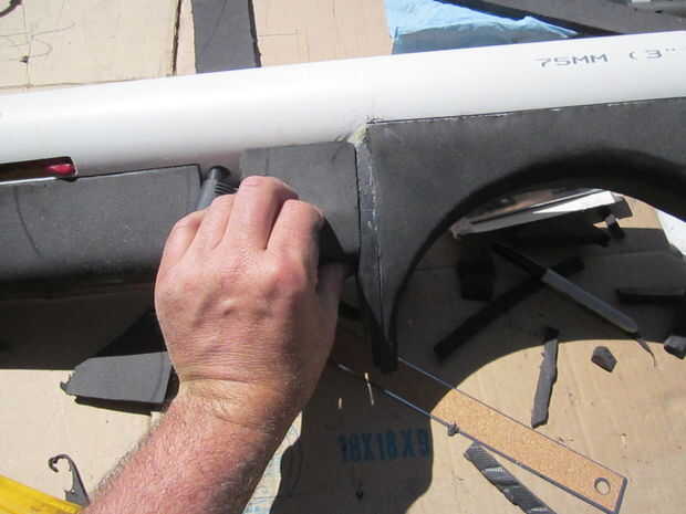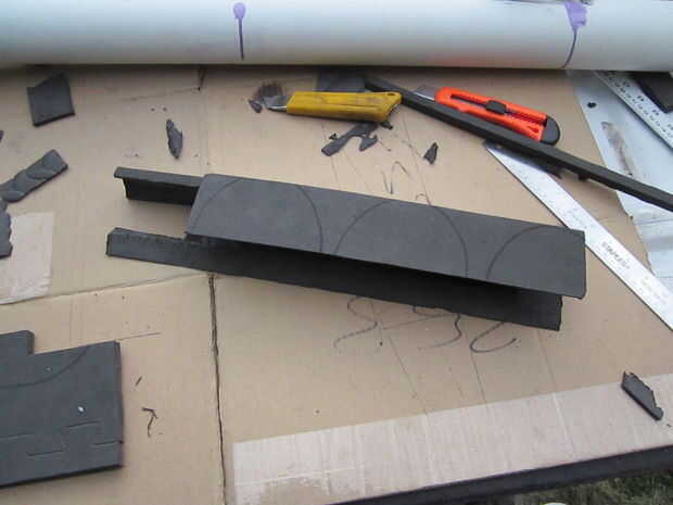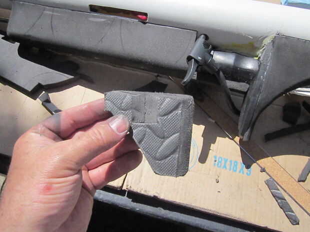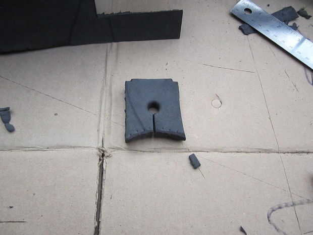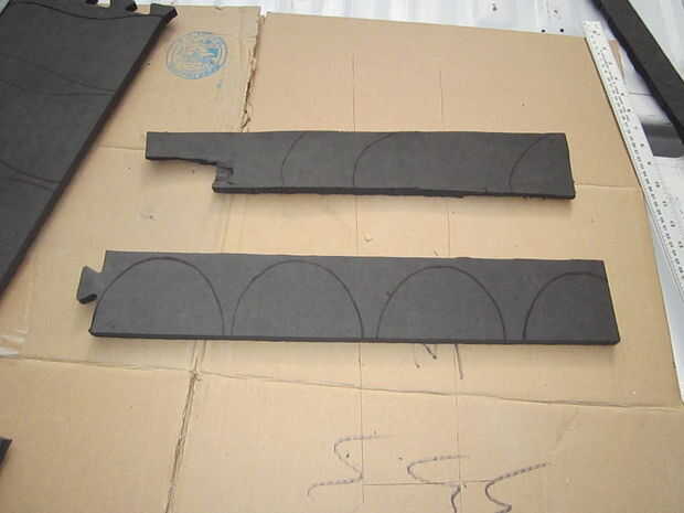 La espuma fue cortada con cuchillas de afeitar de la forma con la Dremel y lija.
