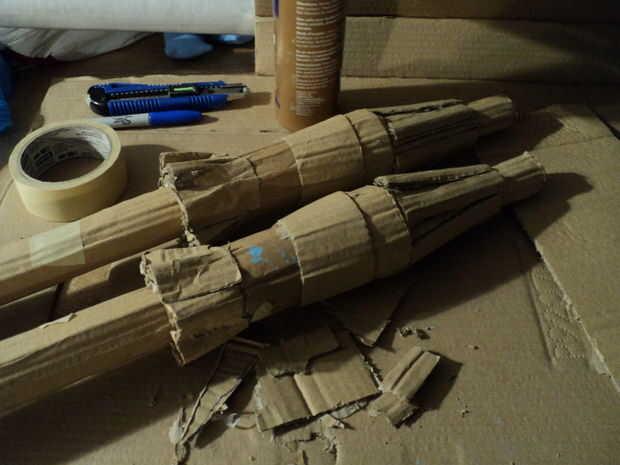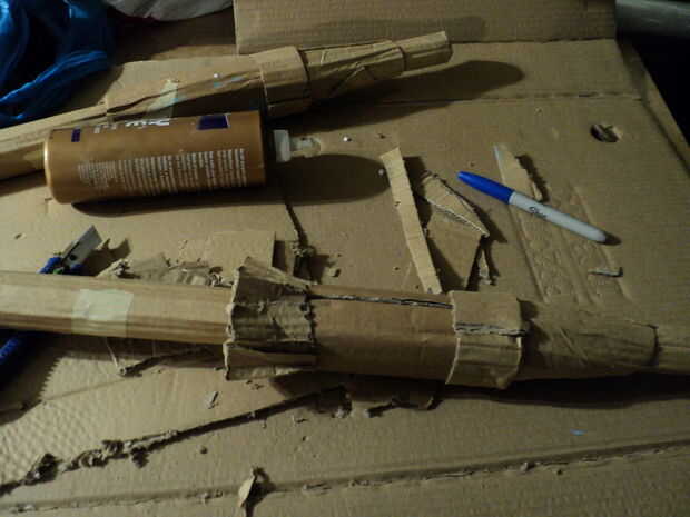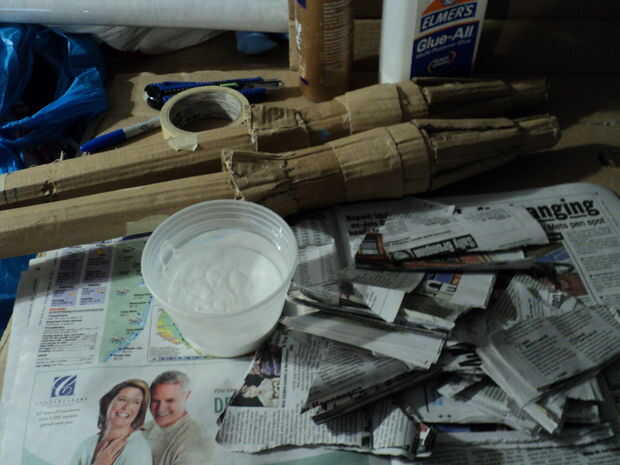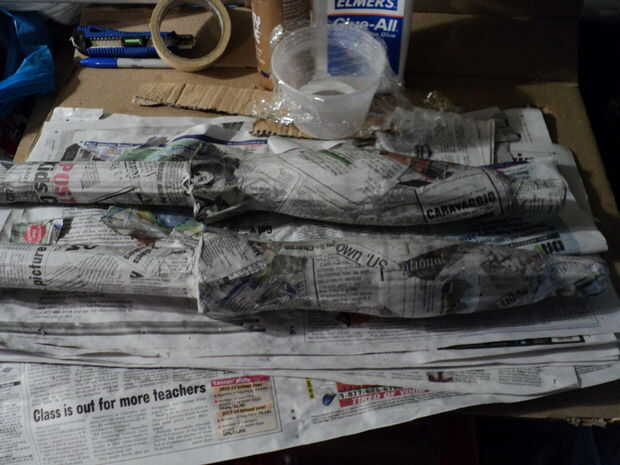 Necesitamos crear el marco para la forma general de los RPG y cubrirla con papel maché para suavizar las superficies. Comenzar por hacer primero las granadas cohete propulsado.