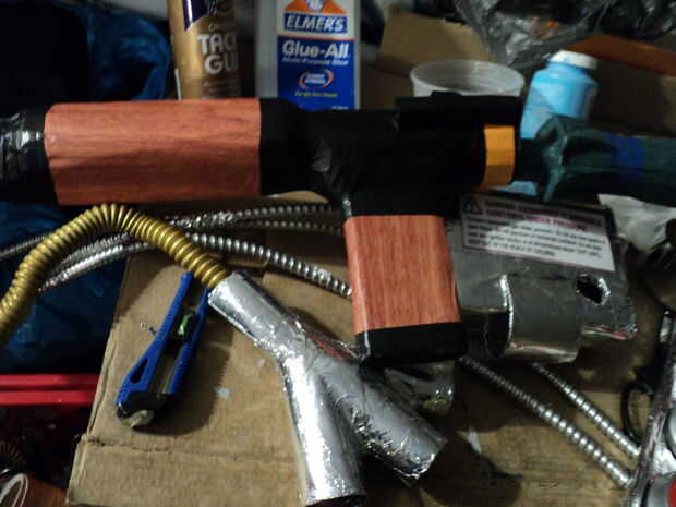 Usé papel grano de madera estante adhesivo contacto del trazador de líneas para las piezas de madera de la mirada. Los bordes irregulares fueron cubiertos con una tira de cinta aislante negra.