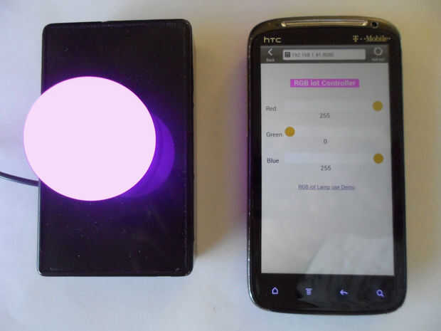 Utilice los deslizadores RGB, en la página que aparece, y mira la lámpara RGB-LED seguir.